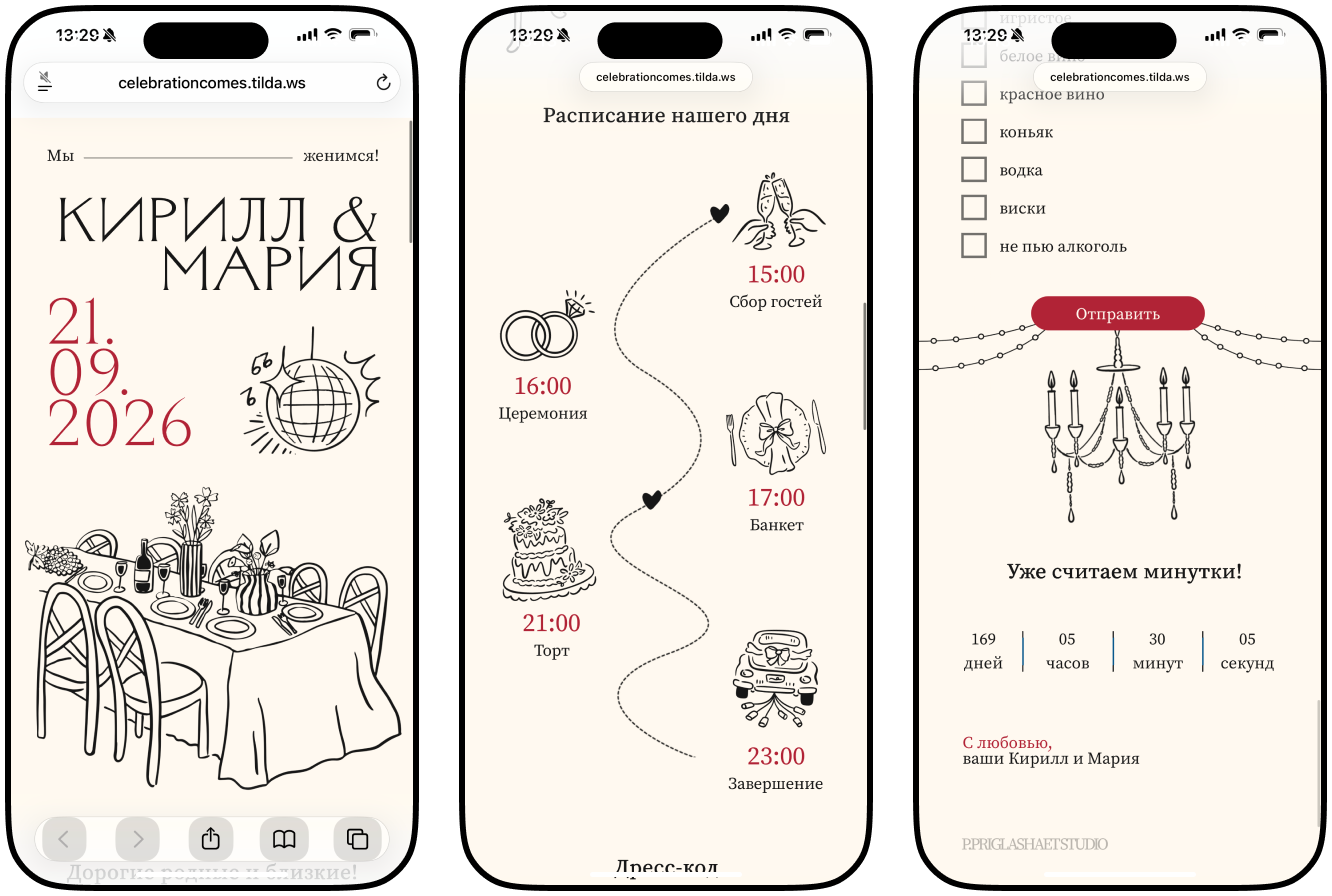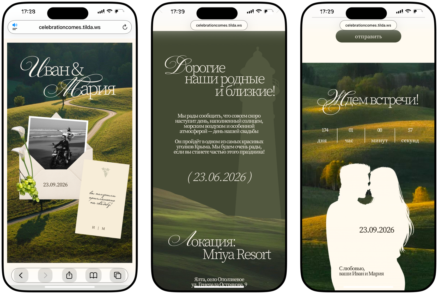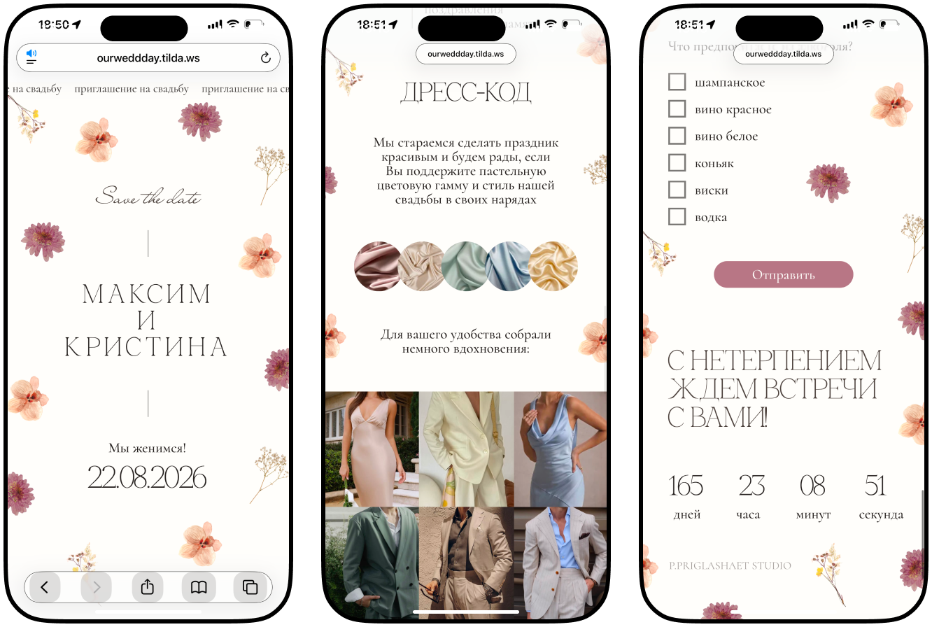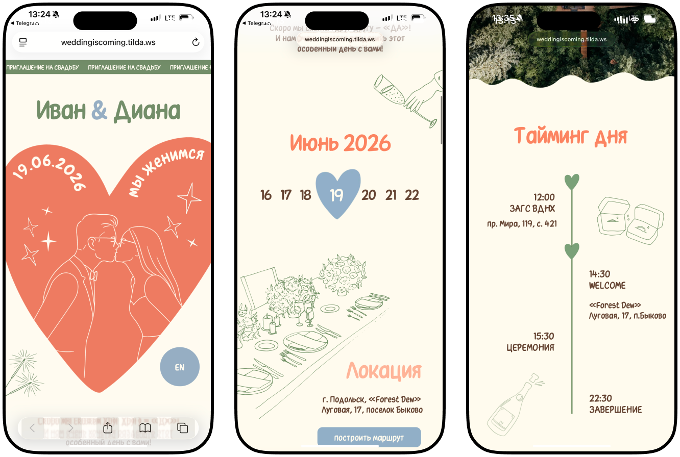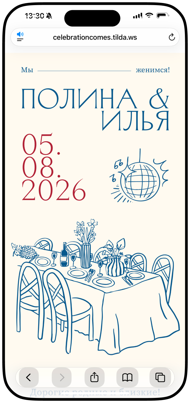 Совет от нас: лучший вариант — комбинировать! Одна ссылка — для всех, именные — для важных гостей, а для самых близких — бумажные приглашения на память ♡