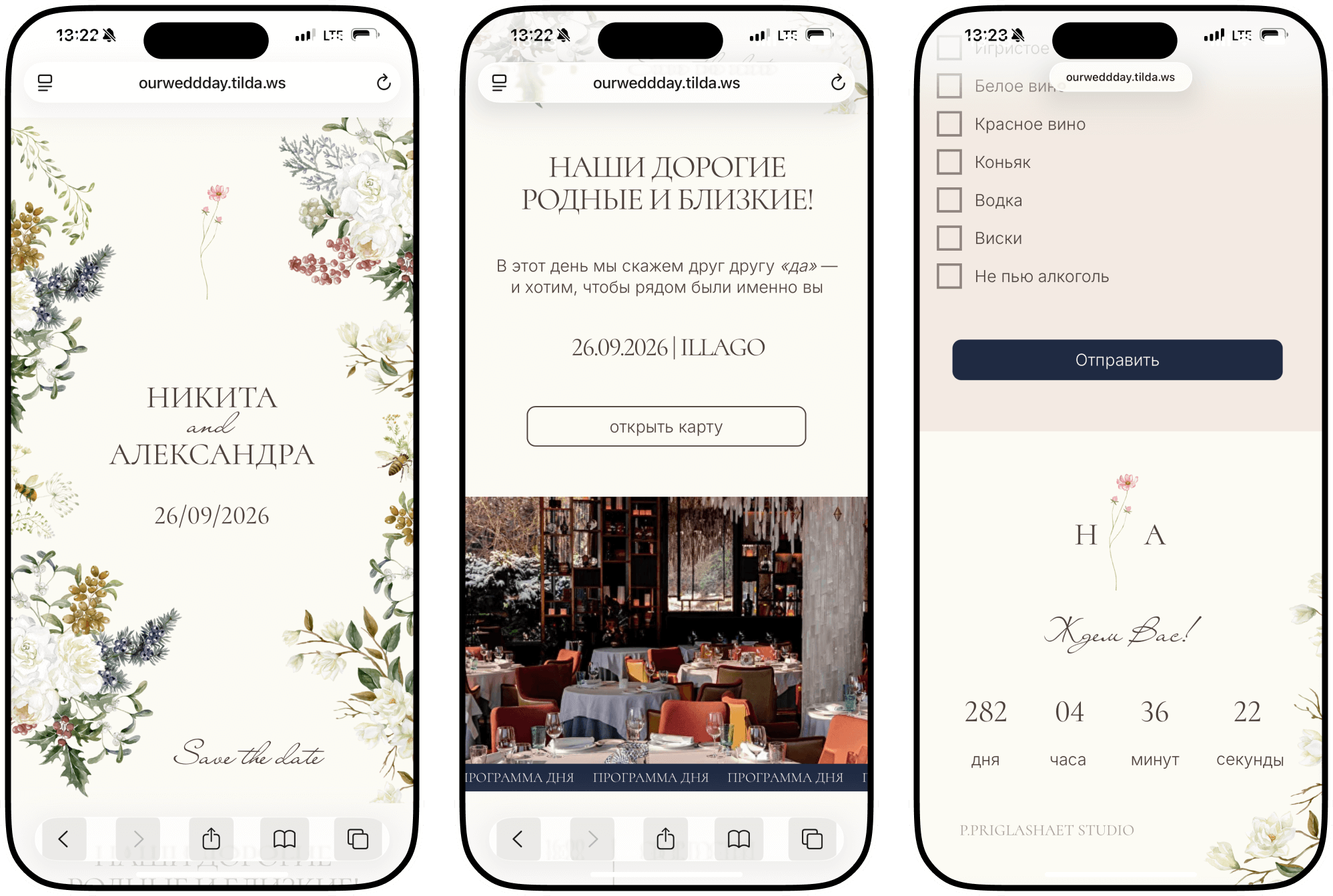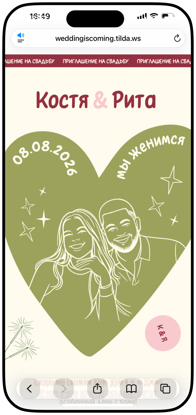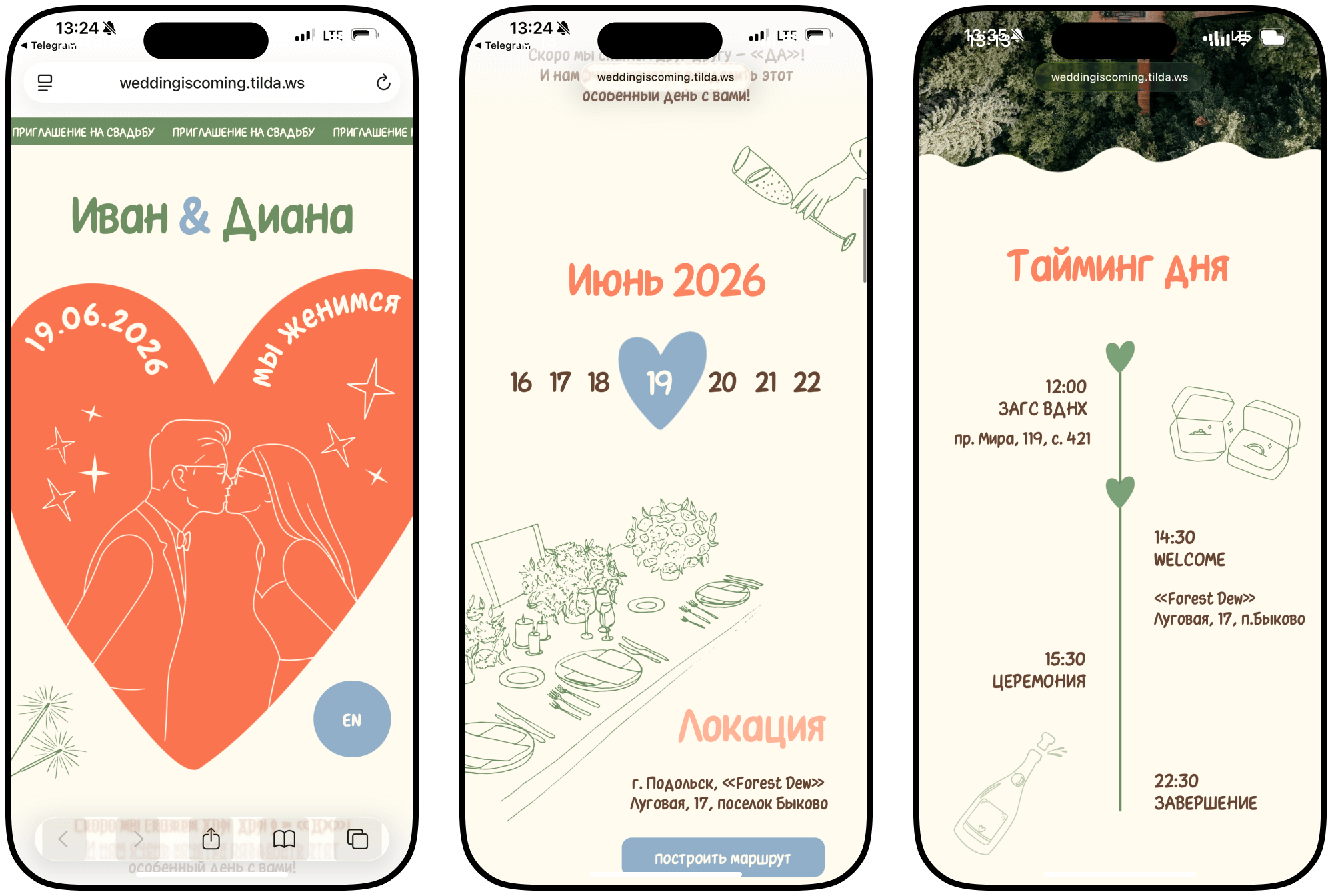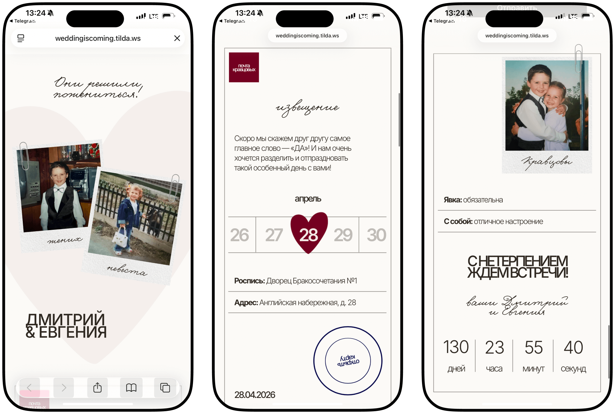 Совет от нас: лучший вариант — комбинировать! Одна ссылка — для всех, именные — для важных гостей, а для самых близких — бумажные приглашения на память ♡